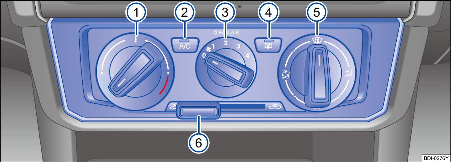 图 1 中控台上:手动空调的操作元件