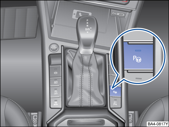 ● 当泊车辅助系统识别到合适车位后,仪表会显示可以切换的泊车模式。用户根据泊车位的实际情况,通过按压泊车开关选择合适的泊车模式。